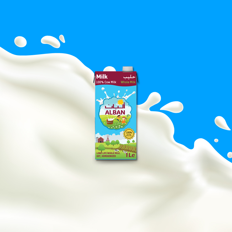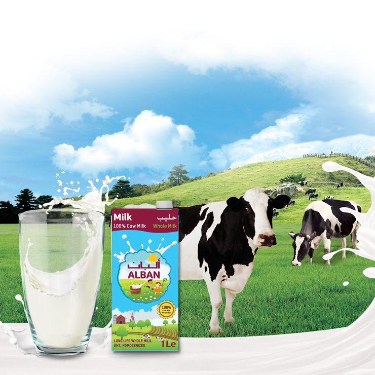 Alban Whole Milk 100% Cow Milk. Long Life Whole Milk, UHT, Homogenized. The product is conform with Austrian and European Union legislation. Produced for Alban Food Company Qatar.